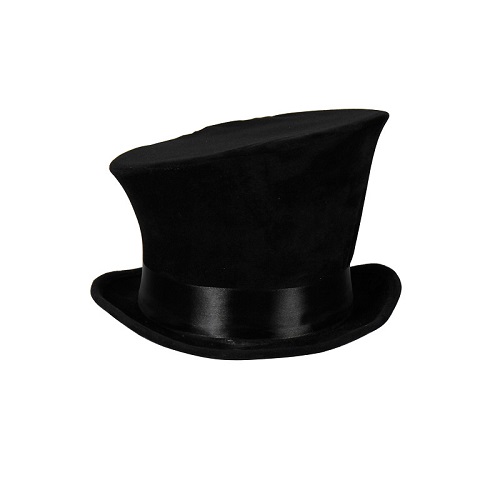 Our traditional black asymetric top hat is a premium quality and ideal for Victorian themed events right through to the 1920’s , mad hatter cosplay and beyond