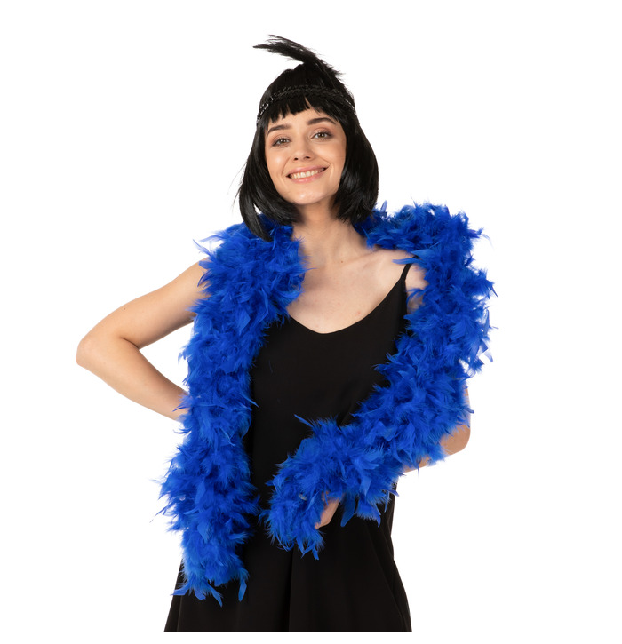 Our blue feather boa is the perfect accessory for 1920s flappers , wild west saloon girls or disco nights