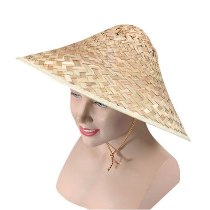 A simple straw hat worn by Chinese woman or men working the rice paddy fields of China. Can be added to a simple Chinese costume or worn on it’s own for a Chinese new year celebration or party