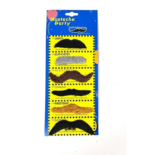 Pack of 6 carded fake moustaches and come in 6 assorted designs
