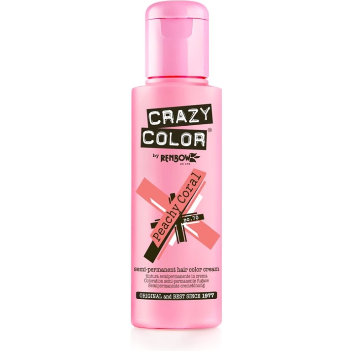 Crazy Color Semi-Permanent Hair Dye Peachy Coral Pink bursting with coral based pink shades is a gorgeous bold and vibrant pale pink colour.Add to pre lightened hair to achieve the best effects