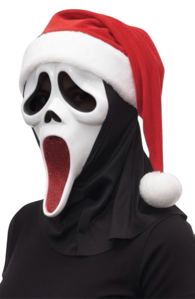 Going as the movie character Scream this Christmas ? then our scream ghostface glitter Santa mask is the perfect Horror fancy dress mask to add to your spooky Christmas outfit