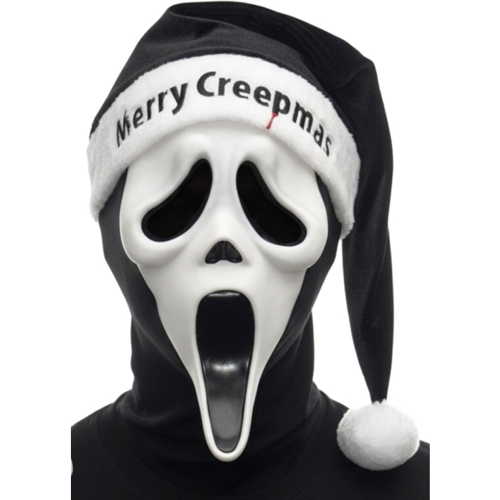 Going as the movie character Scream this Christmas ? then our scream ghostface horror Santa mask is the perfect Horror creepmas fancy dress mask to add to your spooky Christmas outfit