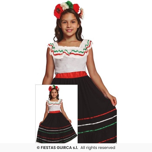 Get ready for Mexican day at school or book day in this great girl’s Mexican Women costume