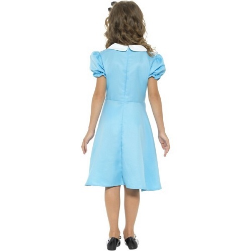Costume comes complete with a polyester pale blue dress with white collar and attached apron and black hairband