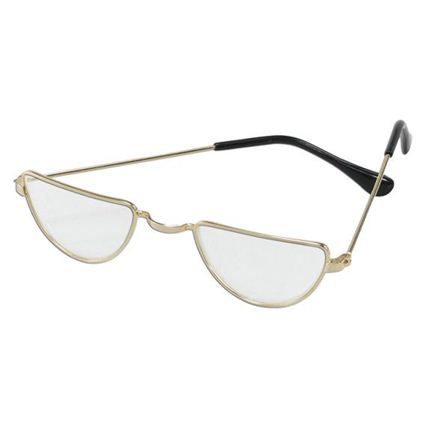 Gold coloured frames with a clear lens , a great accessory item for theatrical shows , Santa or professors