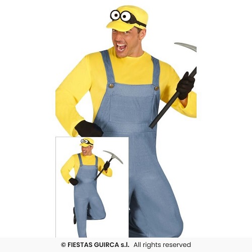 This minion themed adult fancy dress costume is both easy too wear and simple to add accessories to