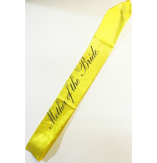 This lovely lemon yellow coloured satin polyester sash is screen printed with the wording “Mother Of The Bride” and is a step away from the commonly found pink sashes which are normally reserved for the Hens