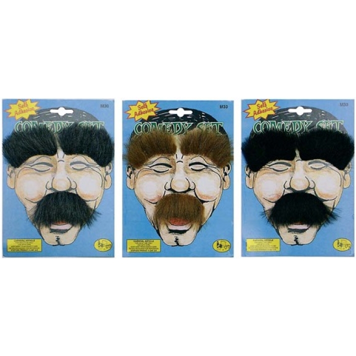Bushy moustache and eyebrows set are the perfect party novelty facial stick on accompaniment to any fancy dress costume or party event
