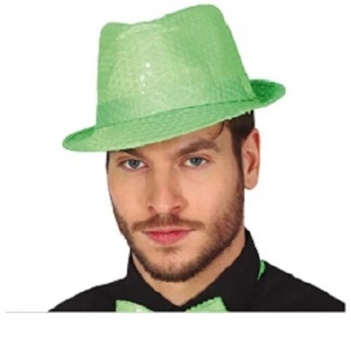 Our neon green sequin trilby is the perfect 1980’s fancy dress mens hat to add to a homemade 80’s festival costume or just to wear as a neon fun party accessory