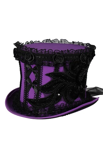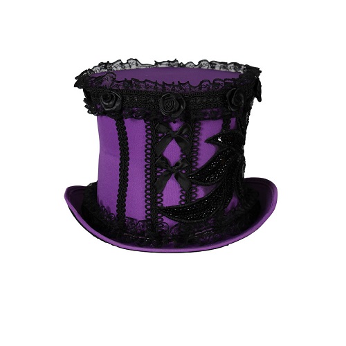 Our traditional style purple burlesque top hat is a premium quality and ideal for Victorian themed events right through to the music hall showgirls , burlesque dancers , steampunk , Victorian ladies
