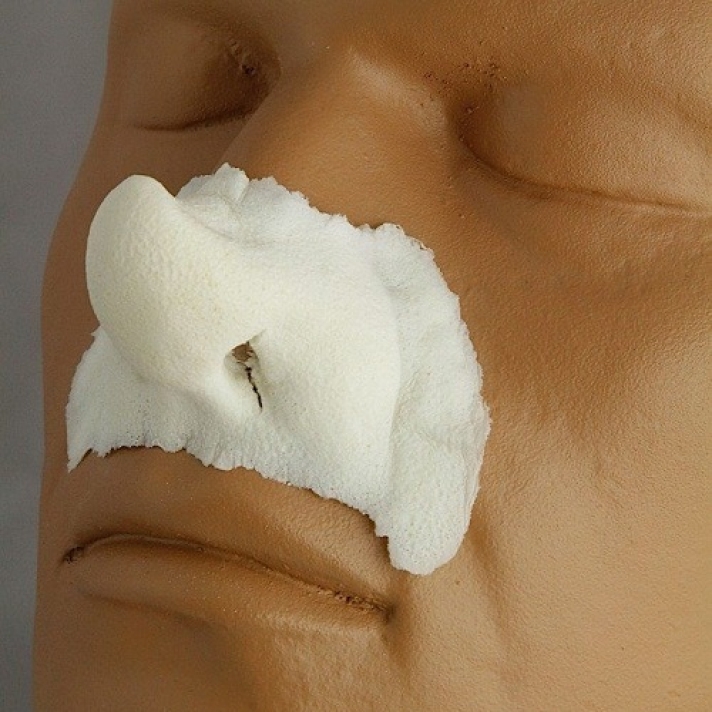 All rubber wear foam latex prosthetic appliances glue on using spirit gum or your chosen adhesive and can be used either on their own or combined with other rubber wear prosthetic pieces from the range