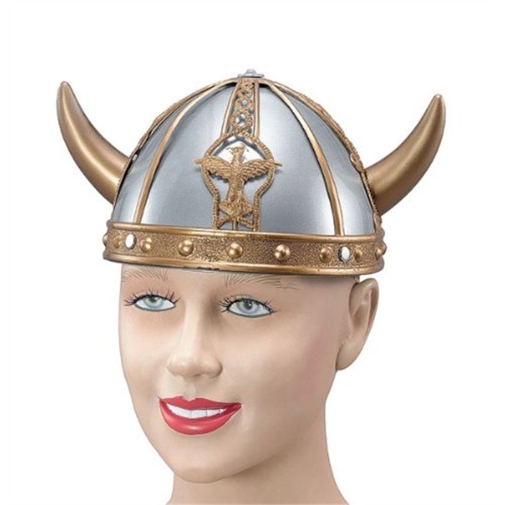 Finish off your Viking or Saxon costume with this deluxe gold and silver coloured detailed helmet with horns