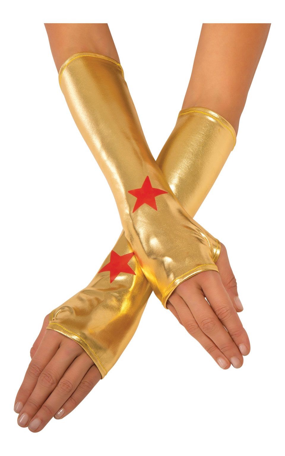Wonder Woman Gold metallic gauntlets with a red screen printed star